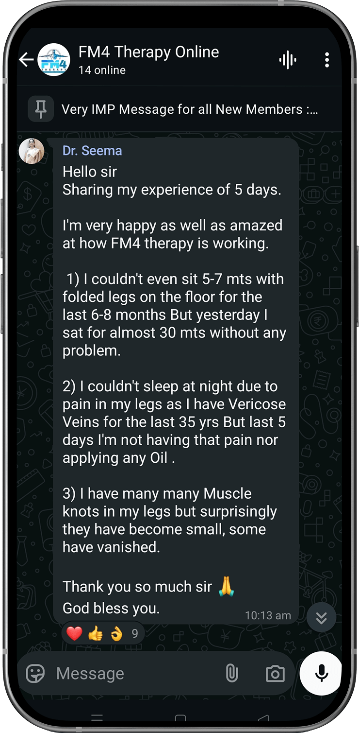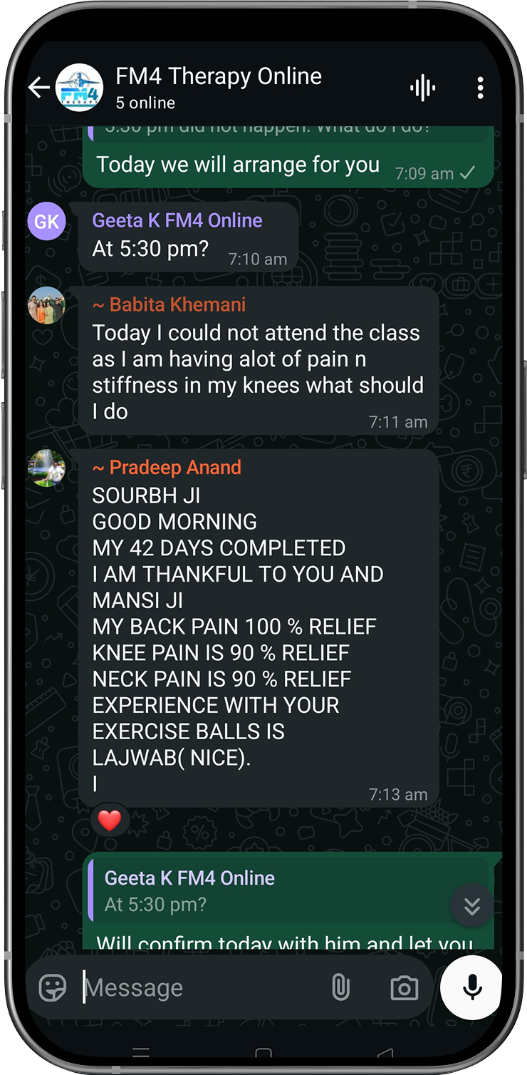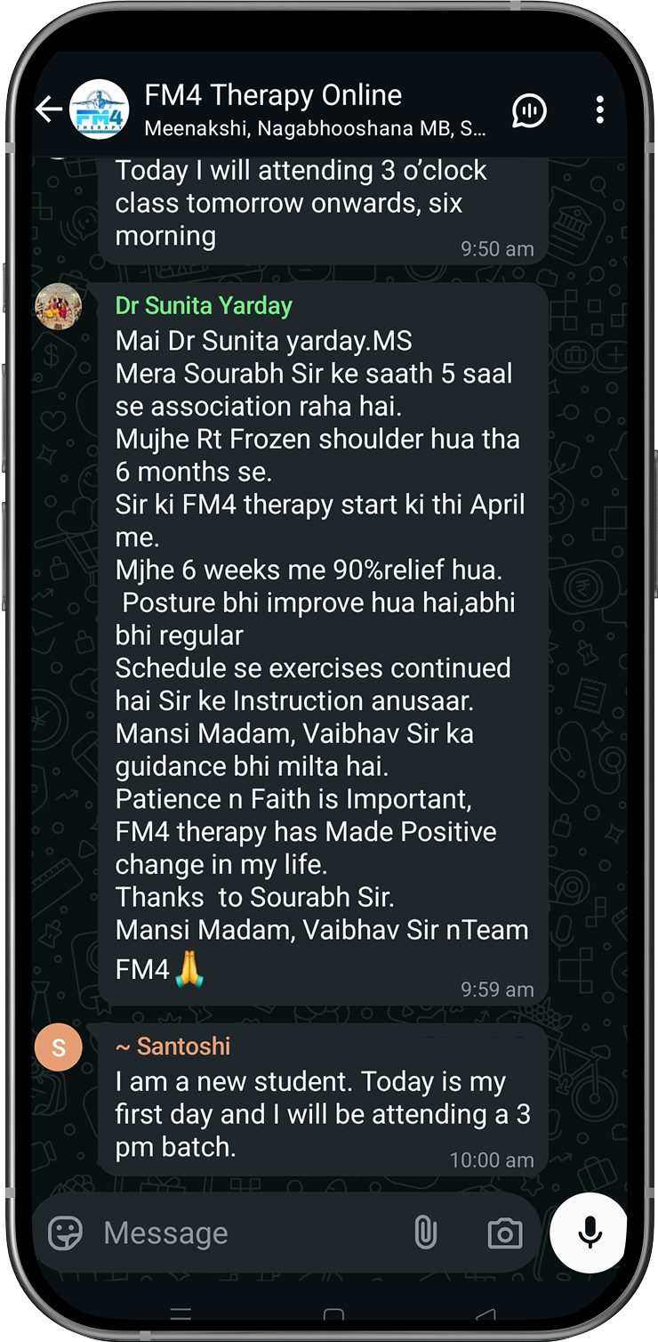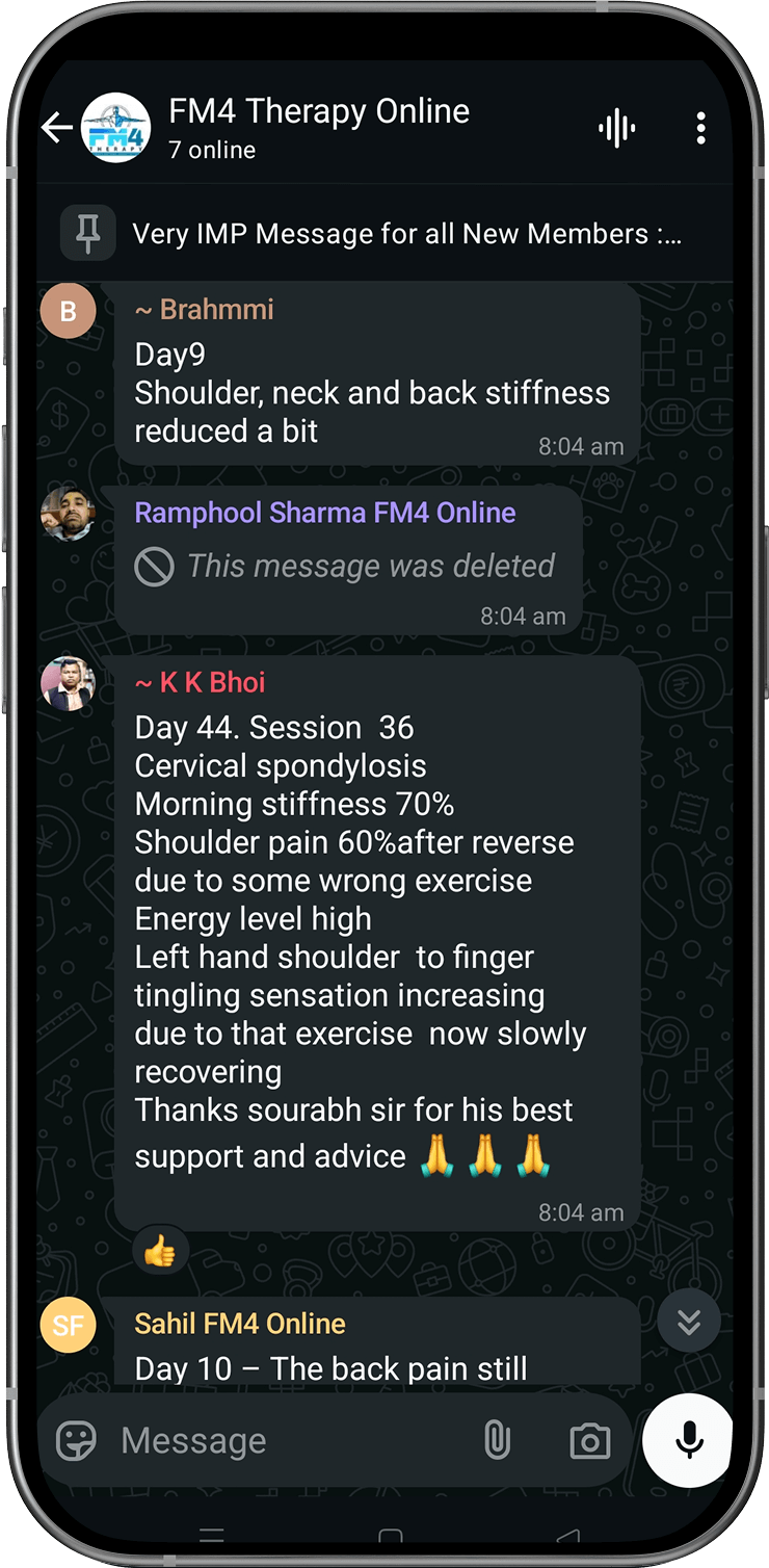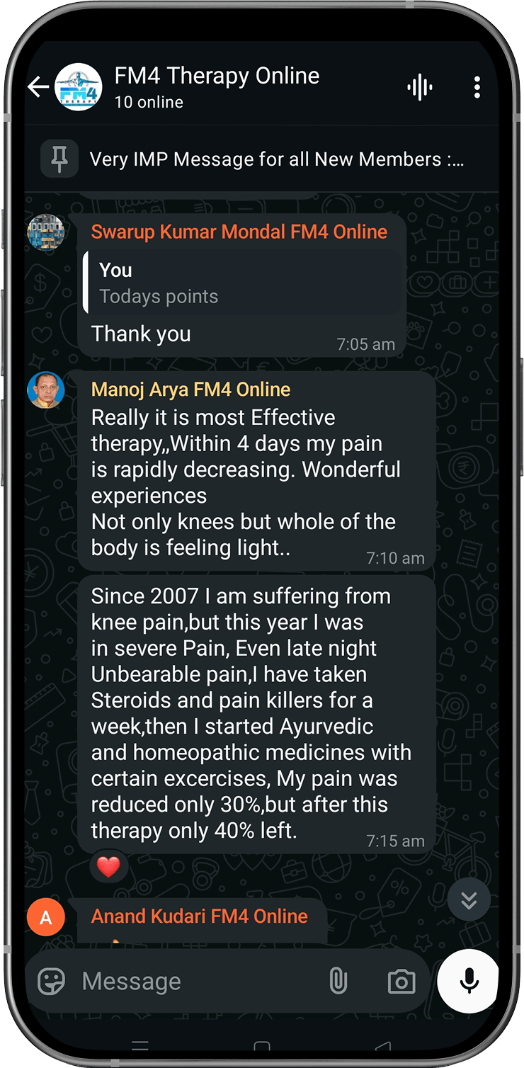 Disclaimer: FM4 Therapy is a lifestyle and movement-based pain management approach. It does not replace professional medical advice, diagnosis, or treatment. Individual results may vary. Always consult your physician before starting any physical program.