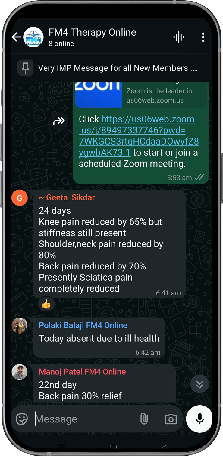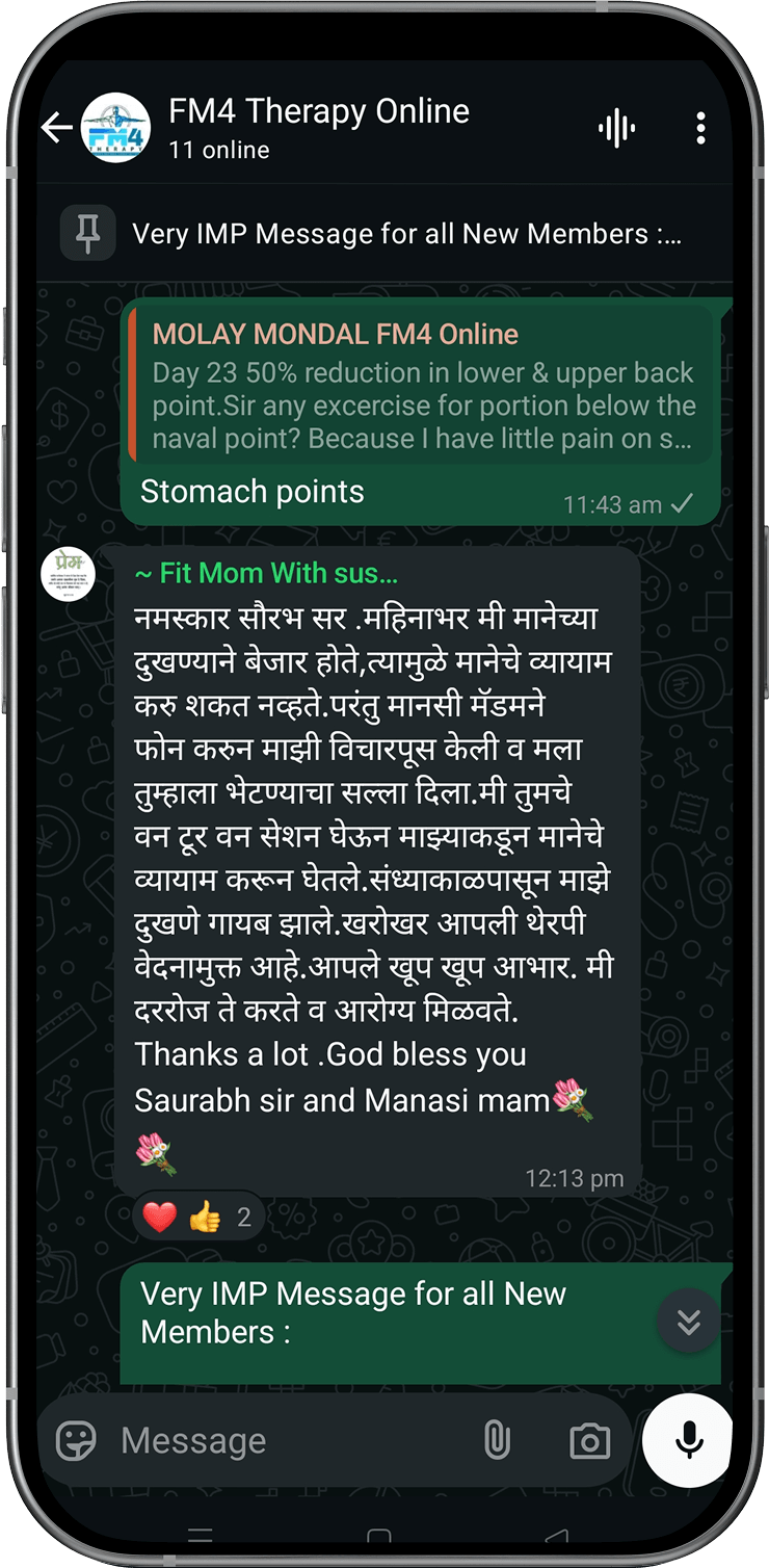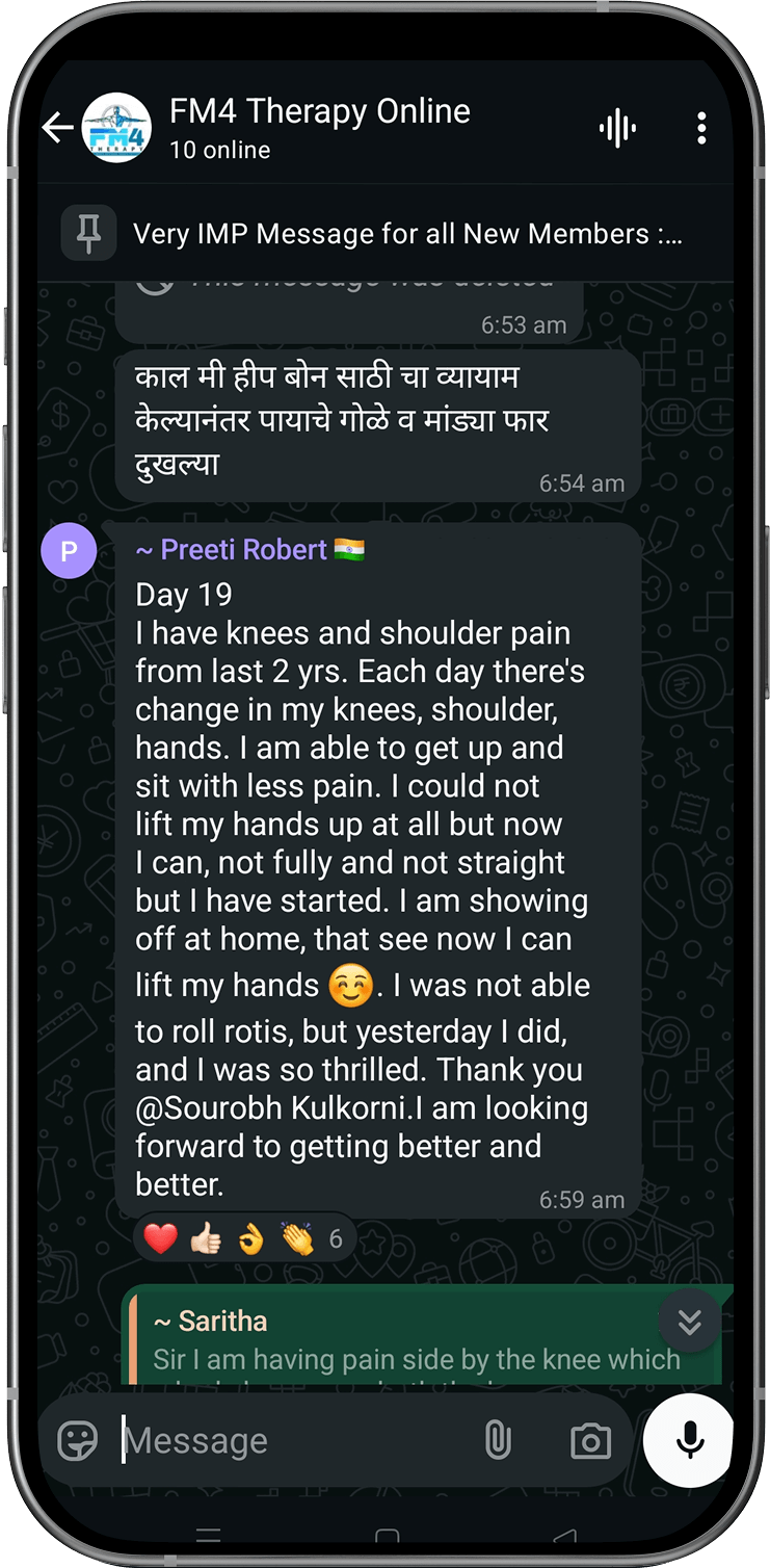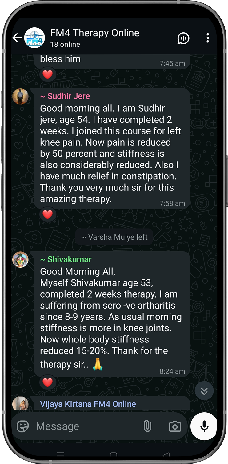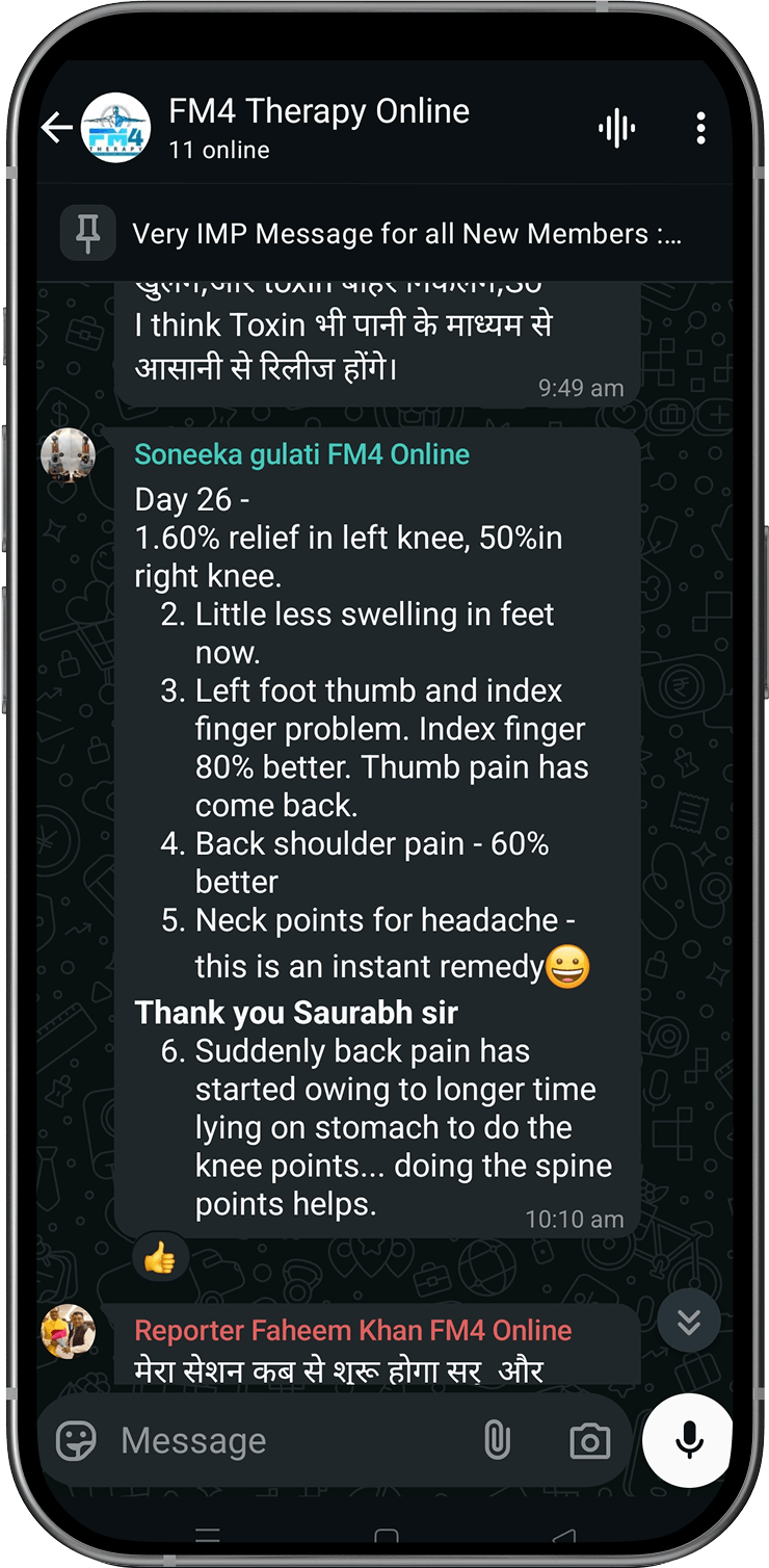Disclaimer: FM4 Therapy is a lifestyle and movement-based pain management approach. It does not replace professional medical advice, diagnosis, or treatment. Individual results may vary. Always consult your physician before starting any physical program.
